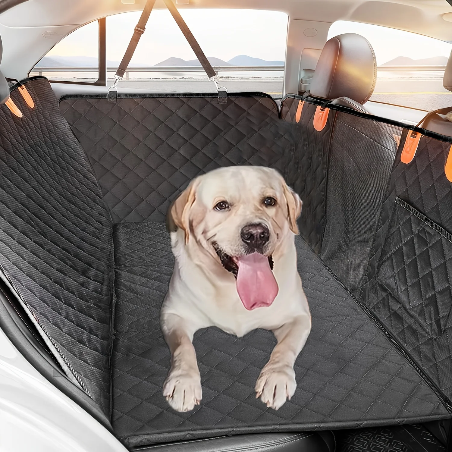 Overseas in Stock Dog Car Seat Cover with Hard Bottom for Back Seat, 100% Waterproof Dog Seat Cover for Cars with Mesh Window